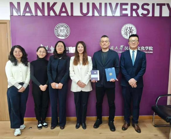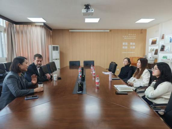 2025年11月18日,日本爱知大学孔子学院办公室主任兼学校就业指导中心主任黑川智广、孔子学院中方院长孙伟,葡萄牙米尼奥大学孔子学院外方院长Antonio Lazaro、中方院长张艳到访南开大学国际教育学院和汉语言文化学院,国际教育学院和汉语言文化学院副院长温宝莹及相关科室负责人参加会见。各方就推进师生交流、联合培养、留学生招生等多项合作领域开展深入会谈并达成共识。