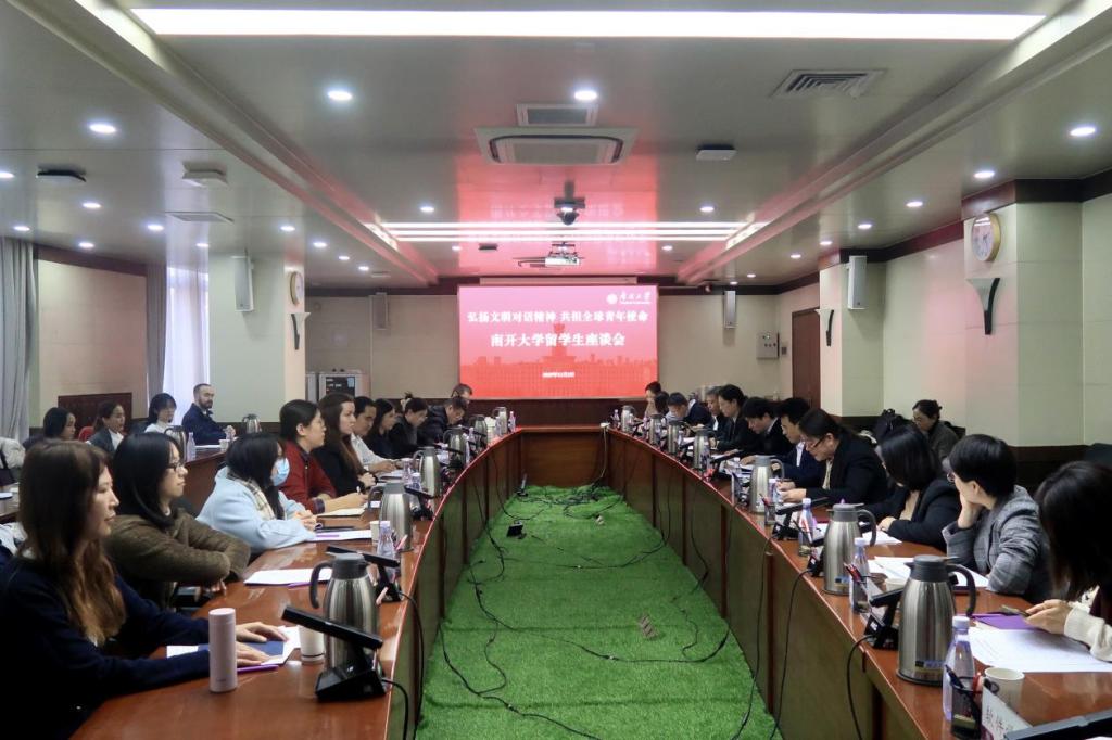 (通讯员 梁煊 摄影 于颖)12月2日,南开大学在八里台校区服务楼举行“弘扬文明对话精神 共担全球青年使命”留学生座谈会,围绕深入学习领会习近平主席复信青年汉学家精神展开交流。中国科学院院士、南开大学常务副校长陈军出席会议并讲话,国际教育学院和汉语言文化学院负责人主持会议。