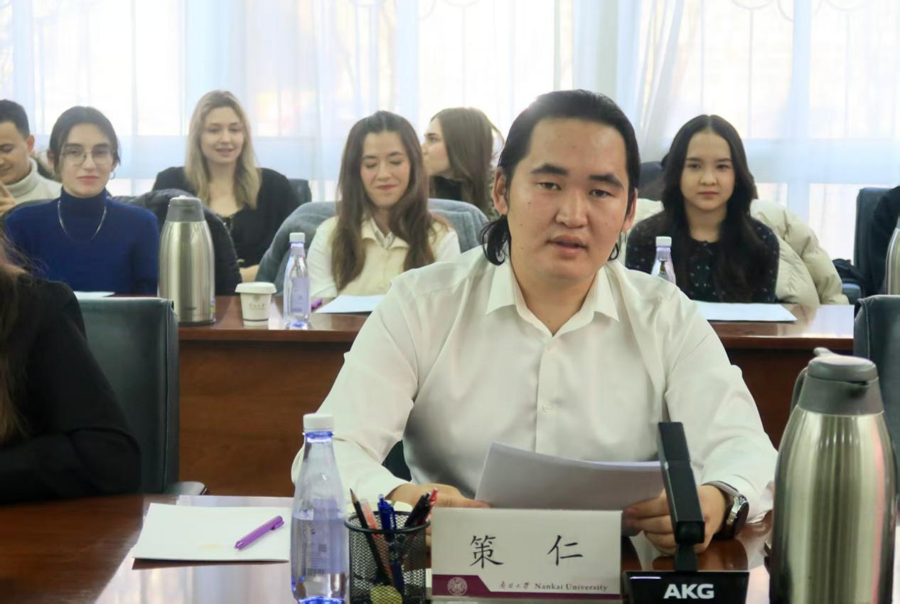 座谈会上,留学生代表结合在南开的学习生活经历,畅谈学习习近平主席复信精神的深切体会。蒙古籍博士留学生策仁彭策格作为收到复信的61位青年汉学家之一,动情分享了复信带来的精神鼓舞。他表示,目前正专注于研究“1949年以来中国文学在蒙古国的传播与接受”,未来将持续深化研究,致力于向世界展现真实、立体、全面的中国形象,为促进中蒙合作与文明交流注入青年力量。此外,来自俄罗斯和印度尼西亚的学生代表也立足专业学习与实践交流,分享了研习汉学、推动文明互鉴的思考与愿望。