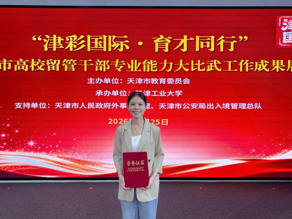 (通讯员 王瑶)近日,由天津市教育委员会主办的“津彩国际·育才同行”2025年天津市高校留管干部专业能力大比武落幕。我校留学生辅导员梁煊获大赛一等奖。